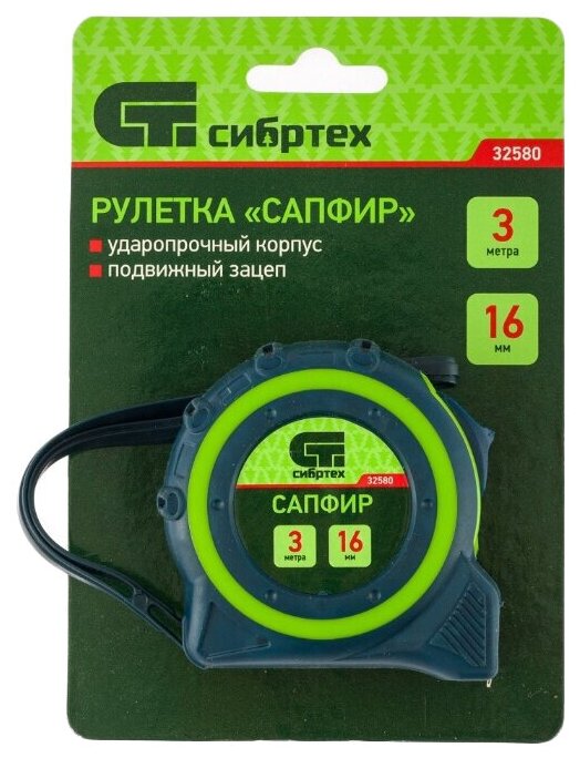 Отзывы на Рулетка Сапфир, двухкомпонентный корпус, 3 м х 16 мм// Сибртех 32580 .