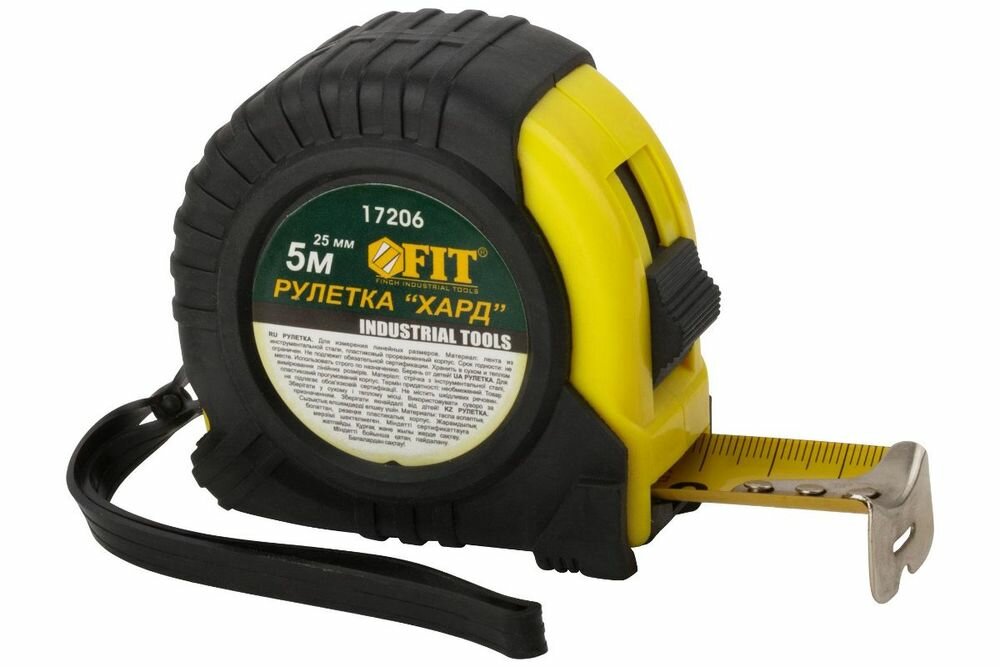 Рулетка FIT 17206 корпус прорезиненный, "Хард", 5м, (25мм) . информация: