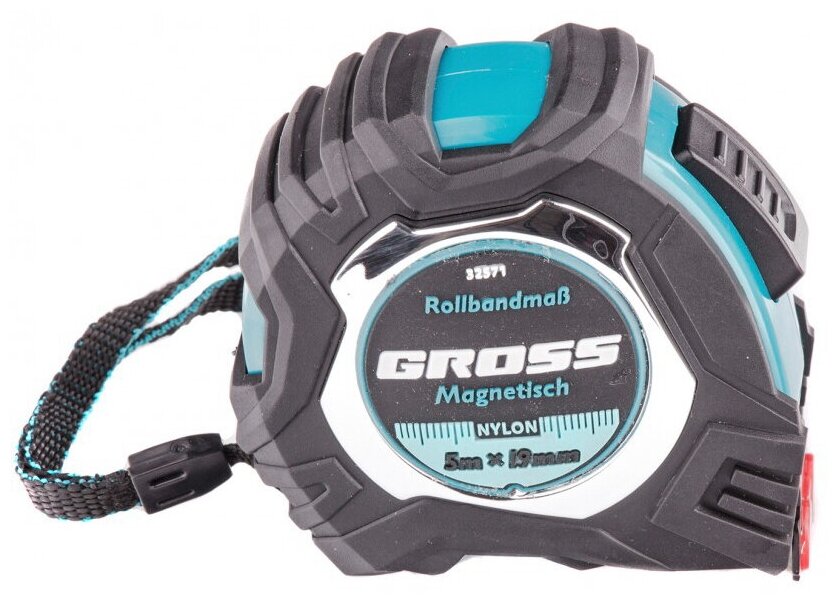 Рулетка Gross Magnetisch 32571, обрезиненный корпус, автостоп, нейлон, 5 м х 19 мм Gross 5599173 . 1 443 ₽