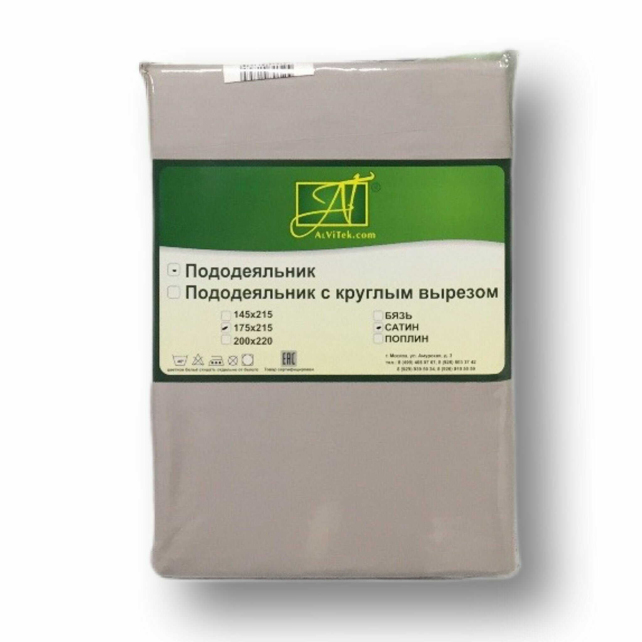 Пододеяльник AlViTek (АльВиТек) 200х220, Евро, На молнии, Сатин, 100% хлопок, Цвет серый, AALV-ПОД-СО-22-ЖСЕР