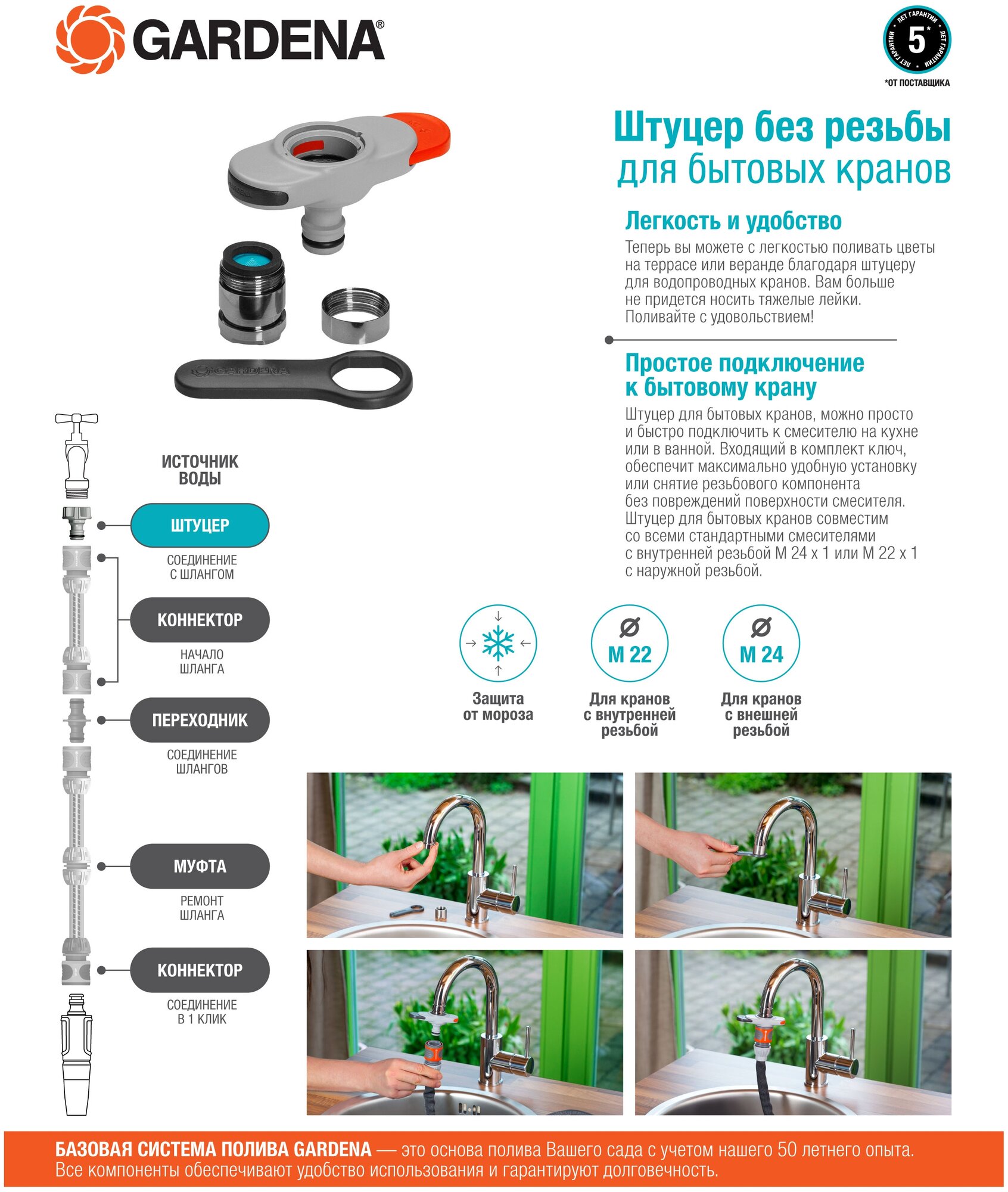 Gardena Штуцер без резьбы для бытовых кранов информация: