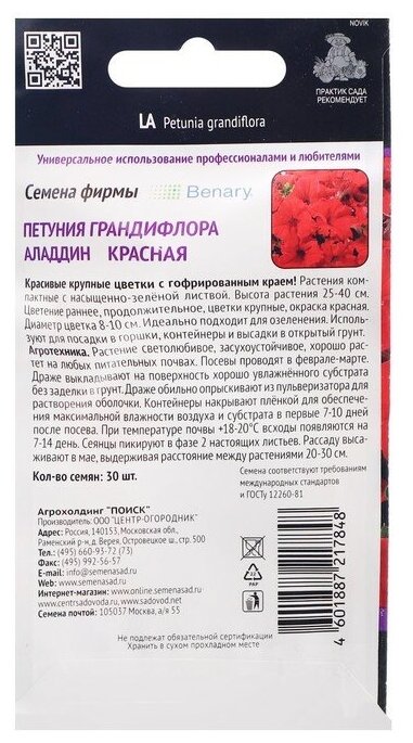 Семена поиск Профи Петуния грандифлора Аладдин Красная 30шт/1 пакет информация: