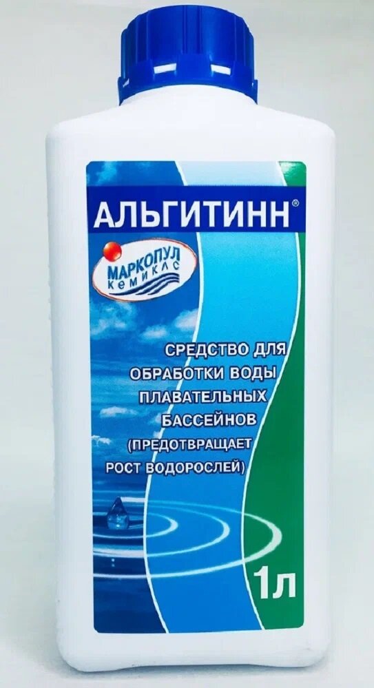 Химия для бассейна - Альгицид: "Альгитинн" (1 литр) Жидкость против водорослей, Дезинфекция и очистка воды без хлора / Средство для ухода за водой "Маркопул Кемиклс"