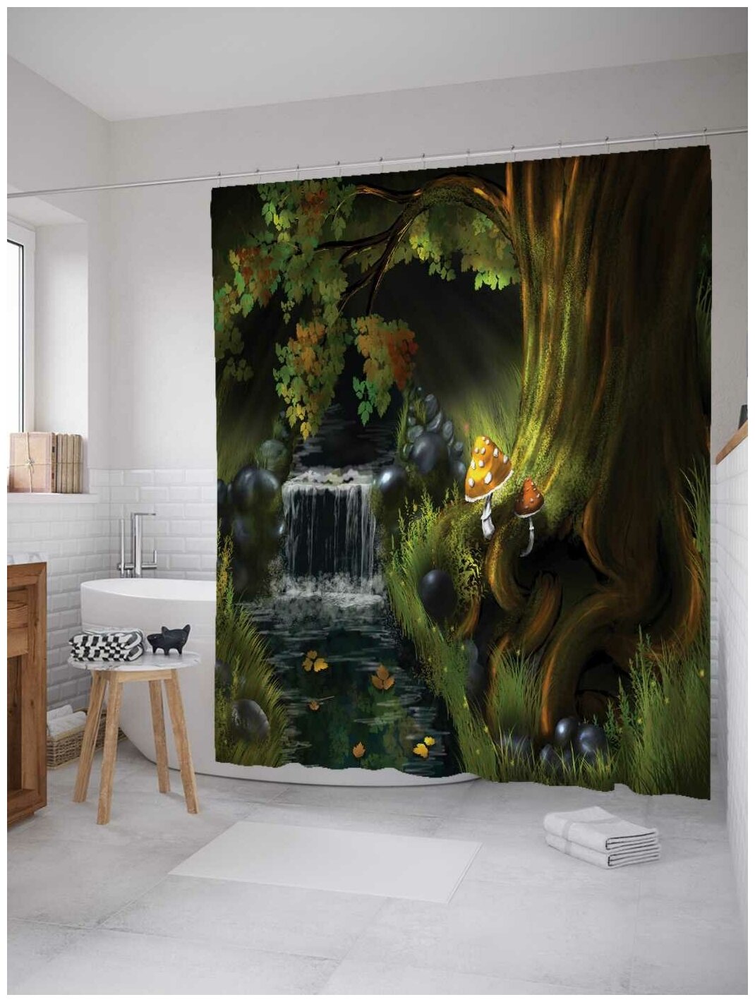 Отзывы на Штора (занавеска) для ванной JoyArty "Магический ручей" из сатена, 180х200 см с крючками