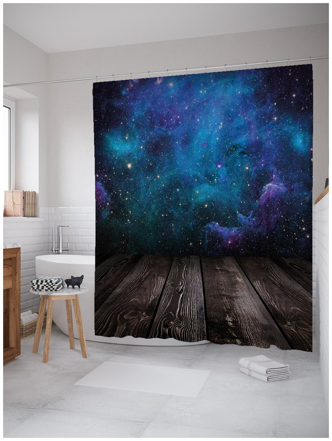 10 цен на Штора (занавеска) для ванной JoyArty "Космический мост" из сатена, 180х200 см с крючками