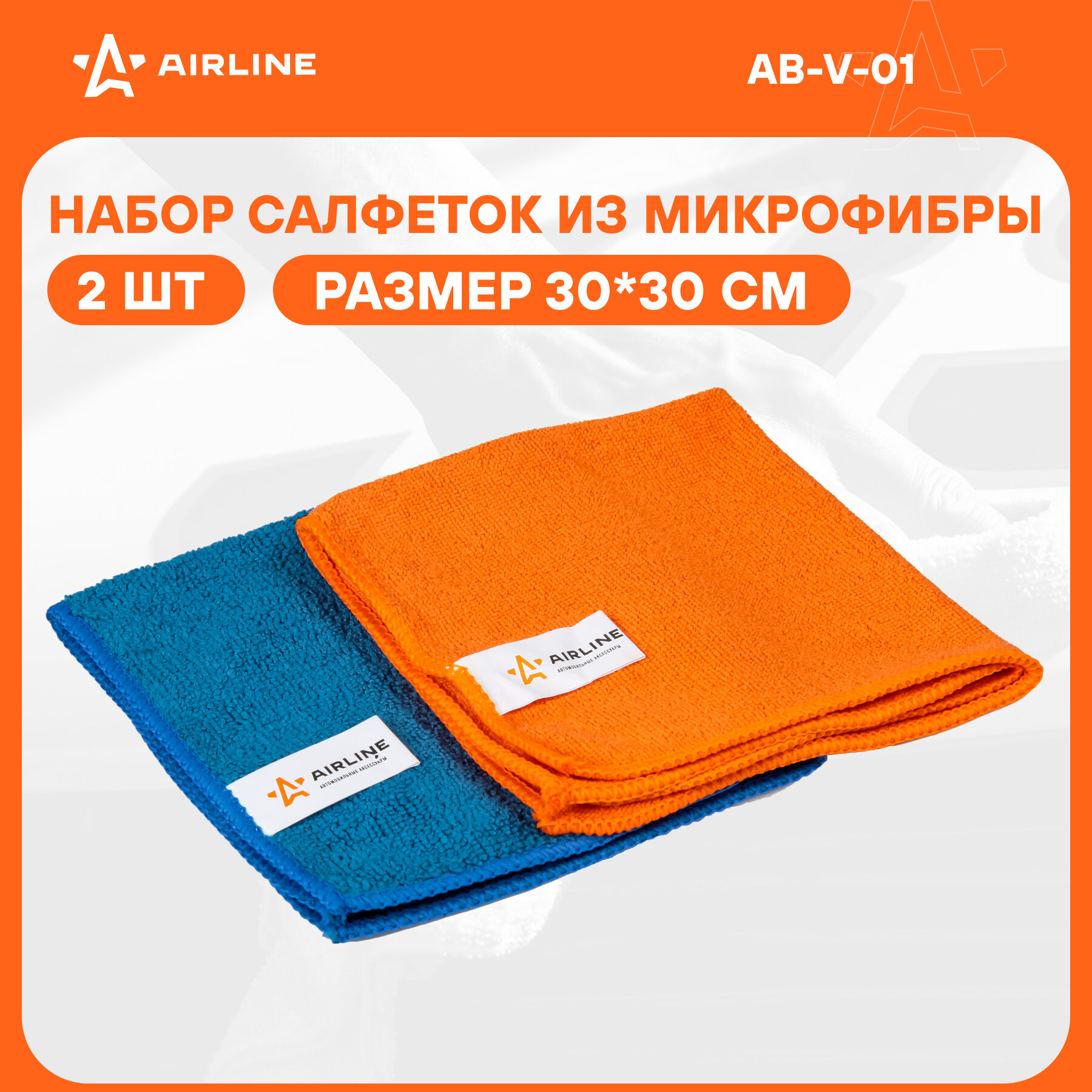 Набор Салфеток Из Микрофибры, Синяя И Оранжевая (2 Шт., 30*30 См) (Ab-V-01) AIRLINE арт. ABV01