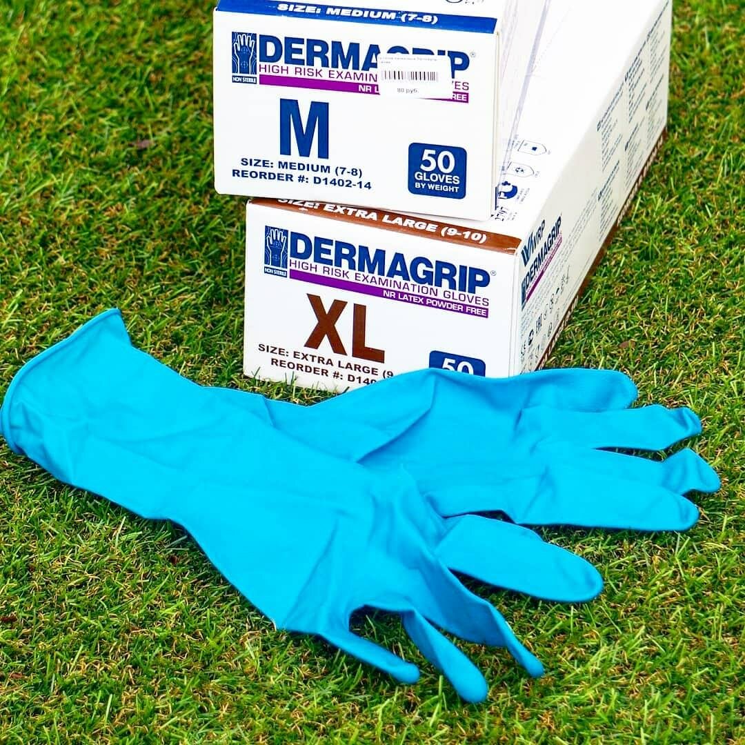 DERMAGRIP Перчатки латексные неопудренные High Risk, смотровые, нестерильные, текстурированные, размер M, 30 гр, 50 шт/уп (25 пар), цвет голубой