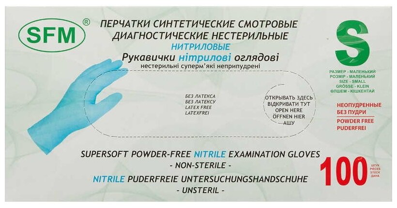 Перчатки нитриловые смотровые SFM Stable-Work Германия 50 пар (100 штук) размер S (малый)