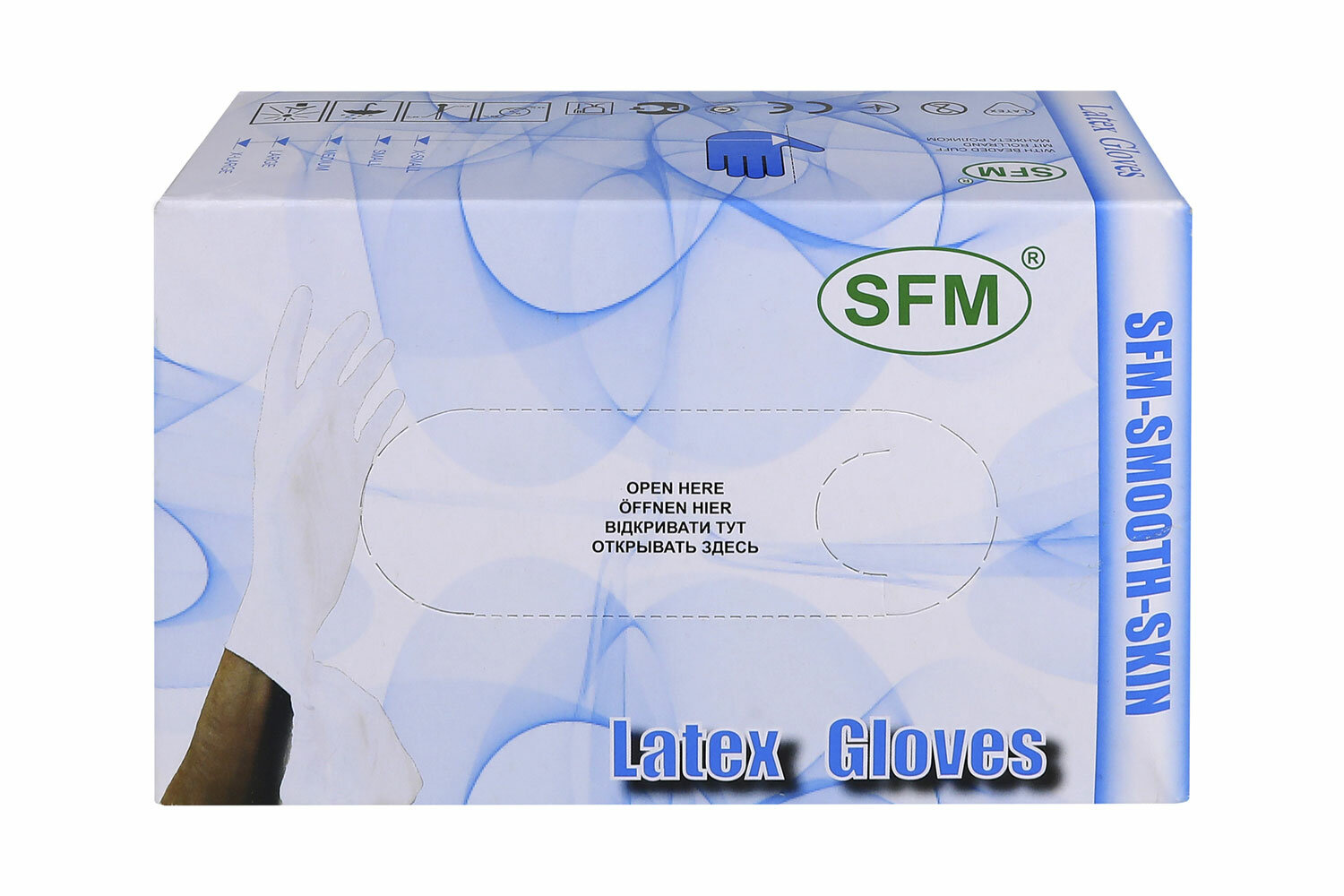 10 цен на Перчатки SFM SMOOTH-SKIN латексные смотровые нестерильные опудренные, бежевые, р. S, блок 50 пар