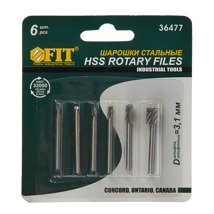 Мини-шарошки абразивные FIT, по металлу, набор 6 шт. информация: