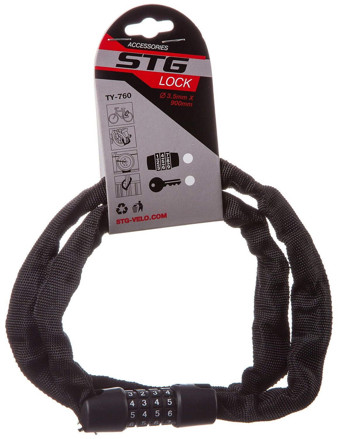 Замок STG TY760, цепь в мат. оплетке, кодовый, диам.3,5х900см черный информация: