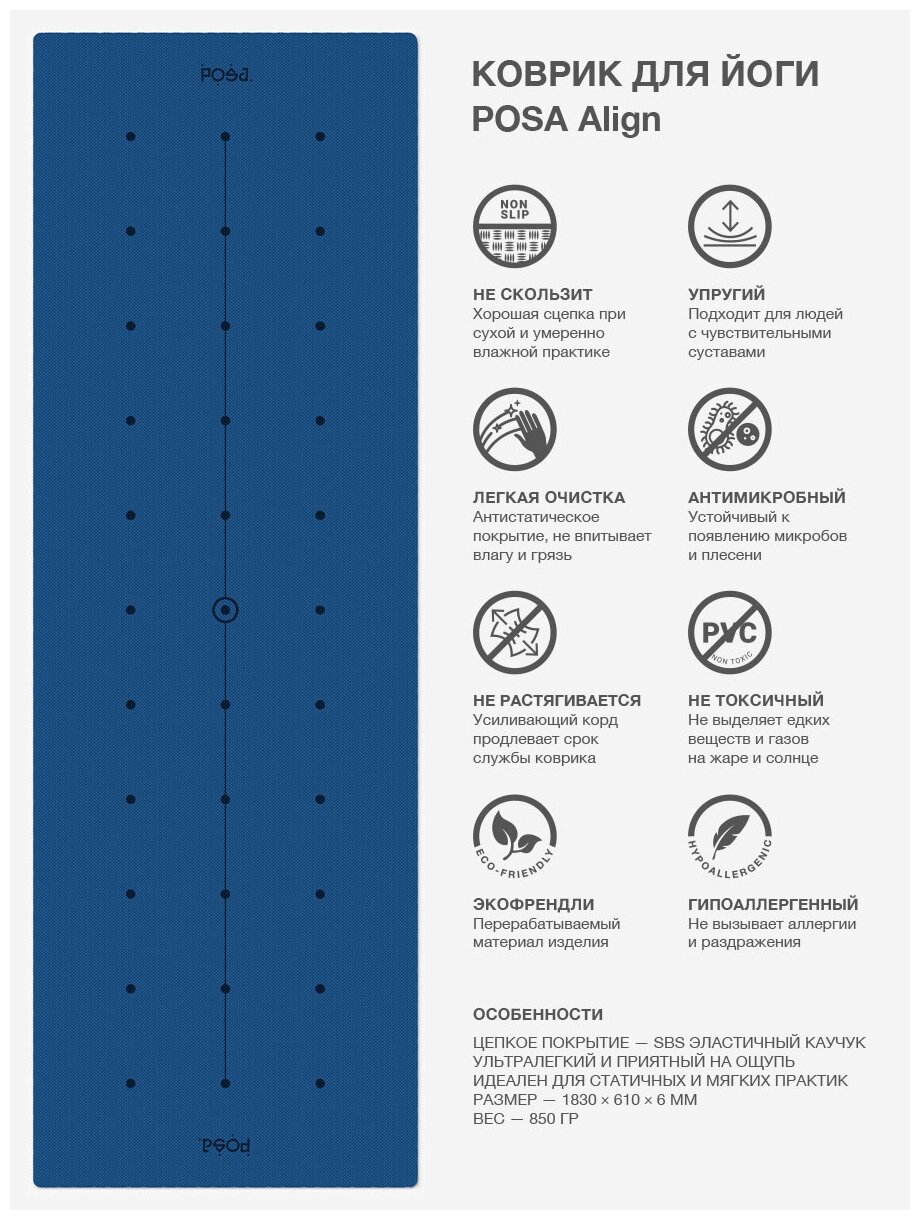 10 цен на Ультралегкий коврик для йоги с разметкой POSA Align Indigo Line