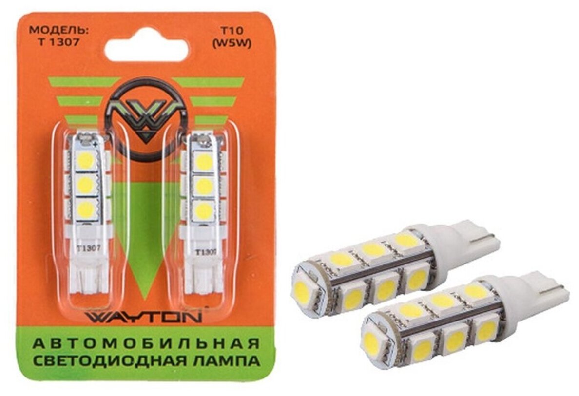 WAYTON Лампа светодиодная WAYTON T1307 12V W5W 10.4W 2 шт 1109003 информация: