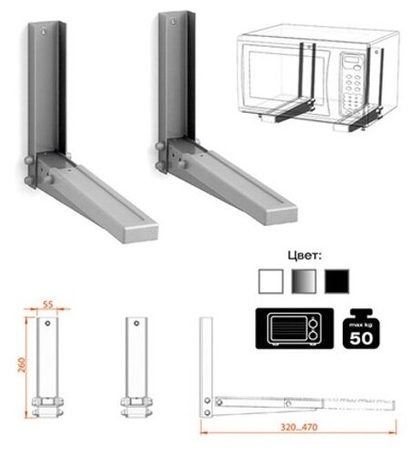 Кронштейн для СВЧ-печи КБ-01-10 300 мм максимальная нагрузка 30 кг черный