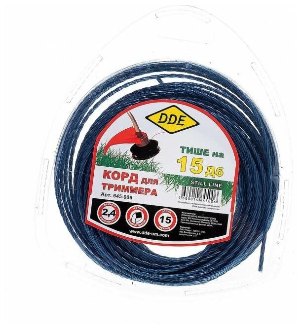 Корд триммерный в блистере DDE "Still line" (витой квадрат) 2,4 мм х 15 м, голубой информация: