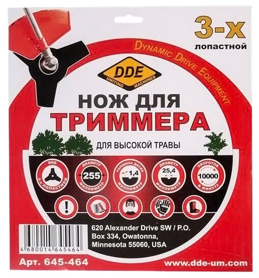 10 цен на Диск для триммера DDE GRASS CUT 3-х лопастной 255 х 25,4мм (толщина = 1,4 мм)