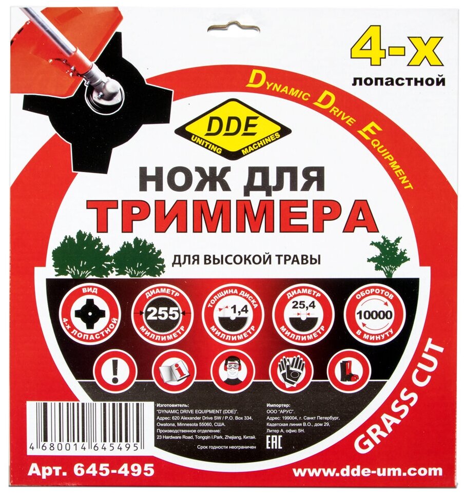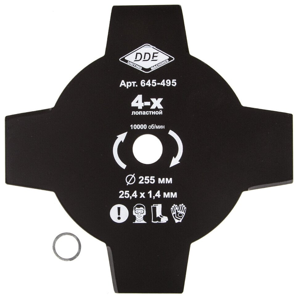 Диск для триммера DDE GRASS CUT 4-х лопастной 255 х 25,4мм(толщина = 1,4 мм) информация: