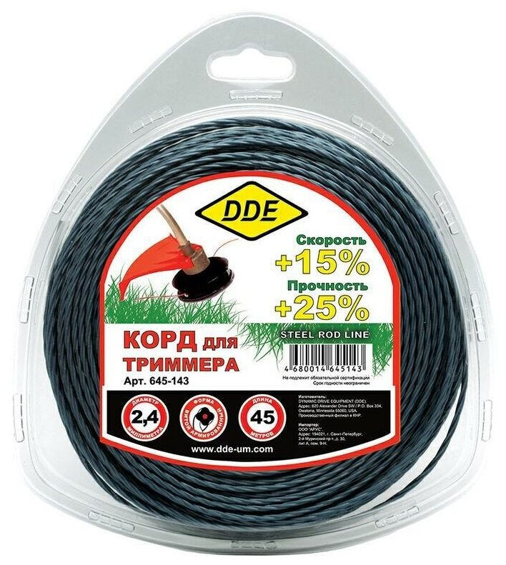 DDE Корд тримм в блистере Steel rod line крест витой армированный 2,4 мм х 45 м 645-143