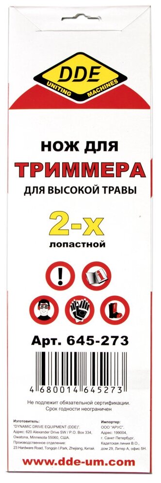 Диск для триммера GRASS CUT 2-х лопастной (255х25.4 мм) DDE 645-273 информация: