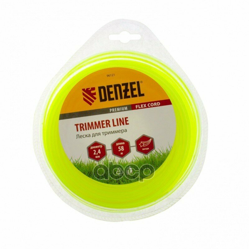 DENZEL Леска для триммера, звезда 2,4 мм х58 м, блистер Flex cord Denzel, ( 96121 )