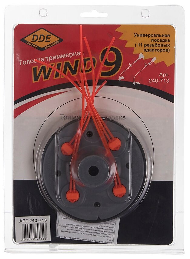 Головка триммерная серия WIND DDE Wind 9 (8-ми прутк. , универсальная, 11 адапторов от М7 до М10) информация: