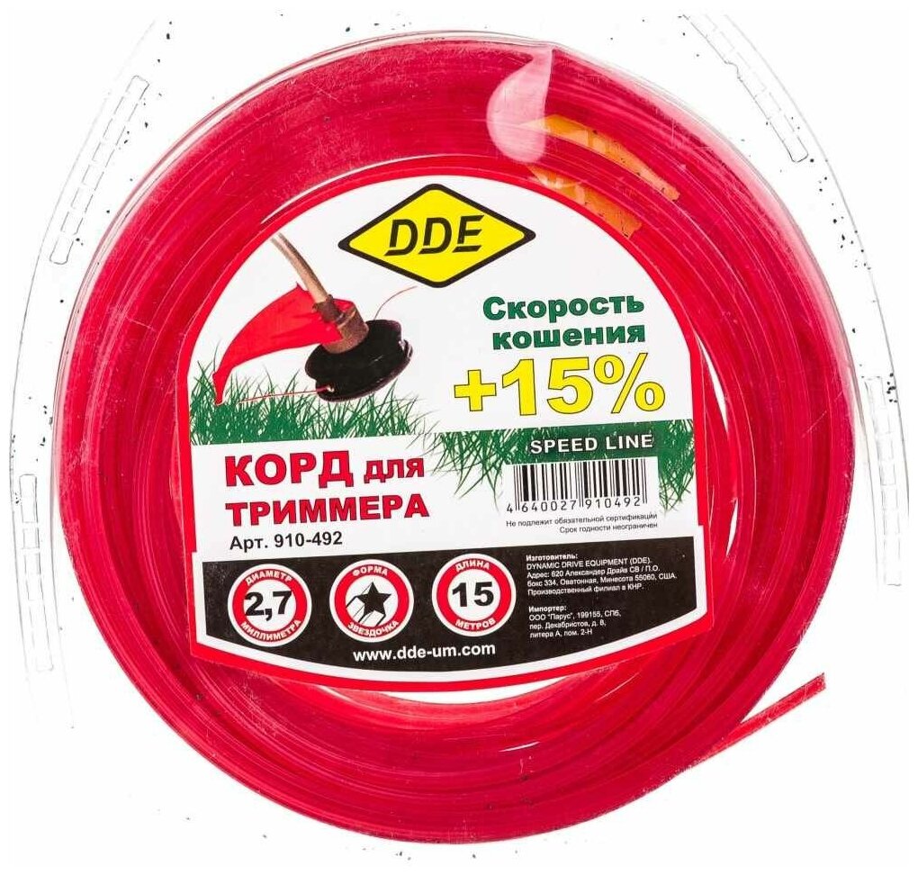 Корд триммерный Speed line (2.7 мм; 15 м; звезда) DDE 910-492 информация:
