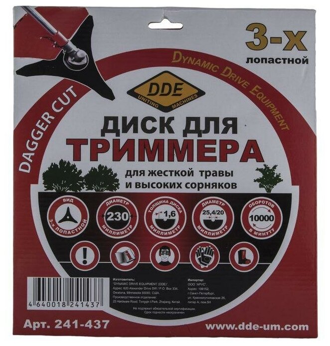 Диск DAGGER CUT (230х25.4/20 мм; 3-х лопастной) для триммеров DDE 241-437 информация: