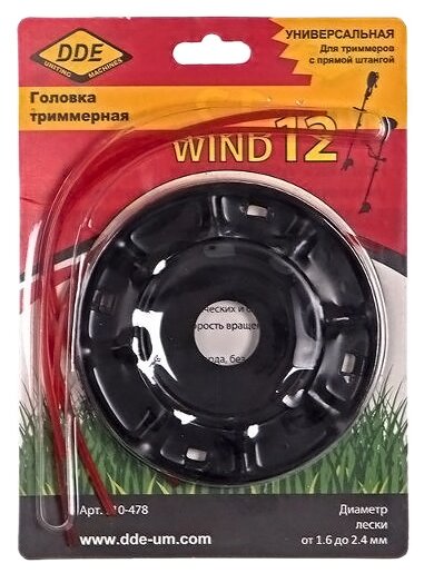 Отзывы на Головка триммерная Wind 12 (1.6-2.4 мм; под гайку) DDE 910-478