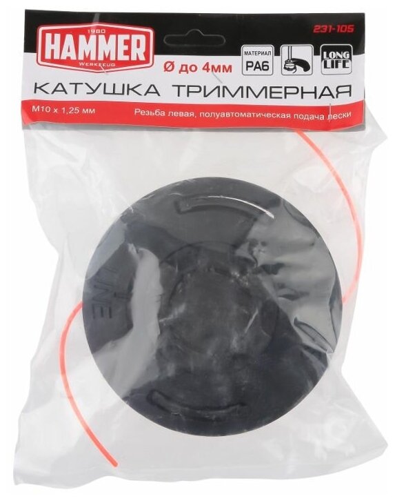 Отзывы на Катушка триммерная Hammer, 231-105, M10х1,25 мм, леска до 4 мм, резьба левая
