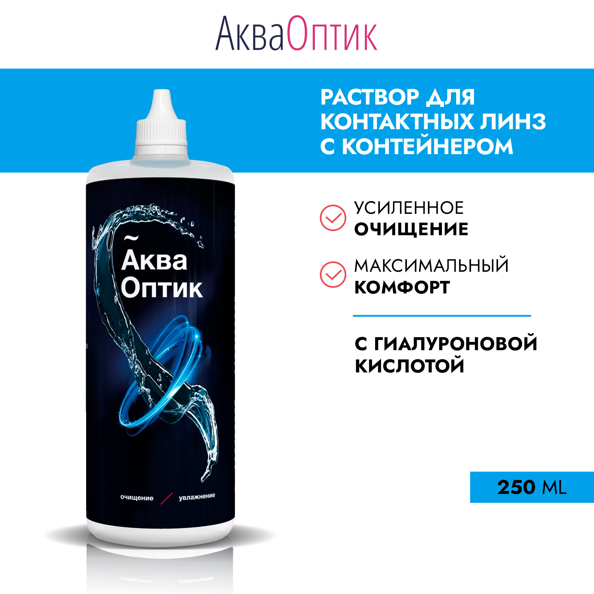 АкваОптик, раствор многофункциональный для ухода за контактными линзами, 250мл (с контейнером для ли