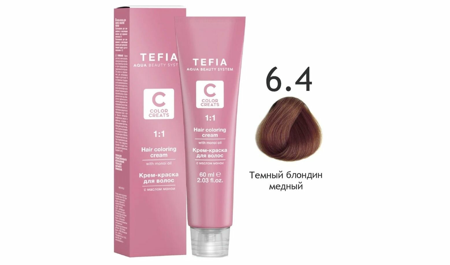 Крем-краска с маслом монои TEFIA Color Creats, 60 мл (6.4 темный блондин медный)