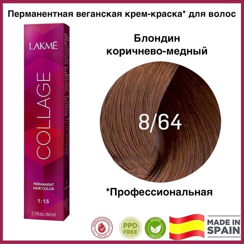 LAKMÉ, COLLAGE, Перманентная крем-краска для волос №8/60, Блондин коричневый, 60 мл