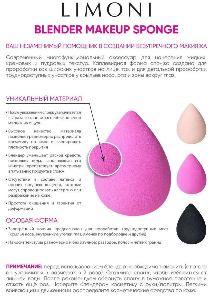 LIMONI Спонж для макияжа тона и пудры, Blender Makeup Sponge 593 ₽