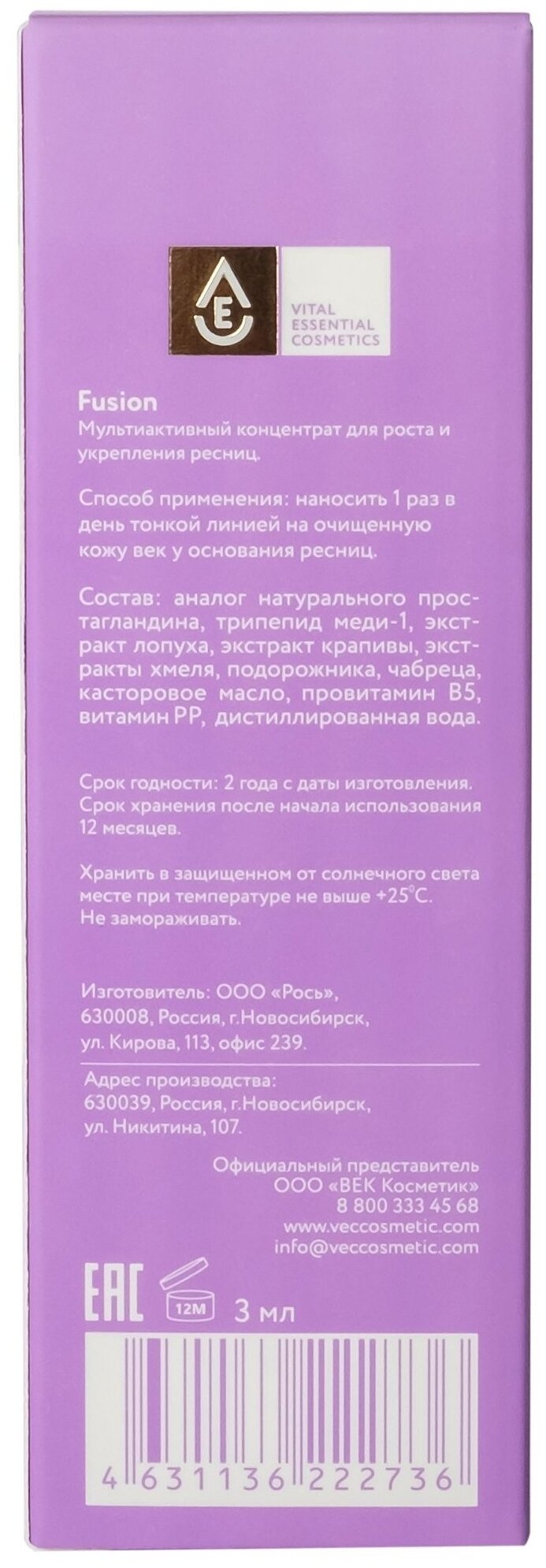 VEC Сыворотка для роста ресниц и бровей FUSION, 3 мл информация: