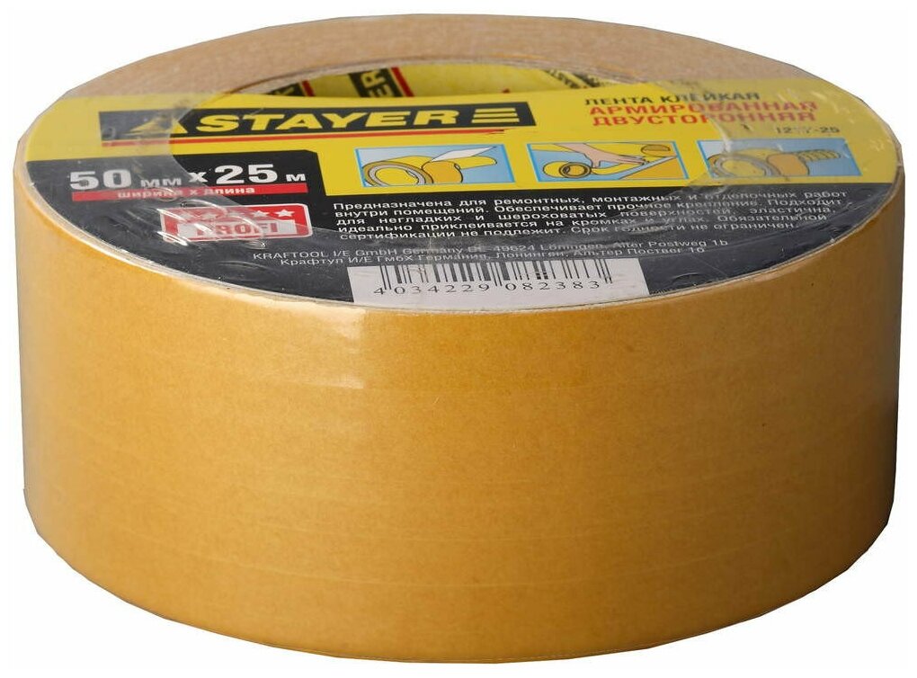 Отзывы на Двухсторонняя клейкая лента на тканевой основе, STAYER Profi 1217-38-05, 38мм х 5м
