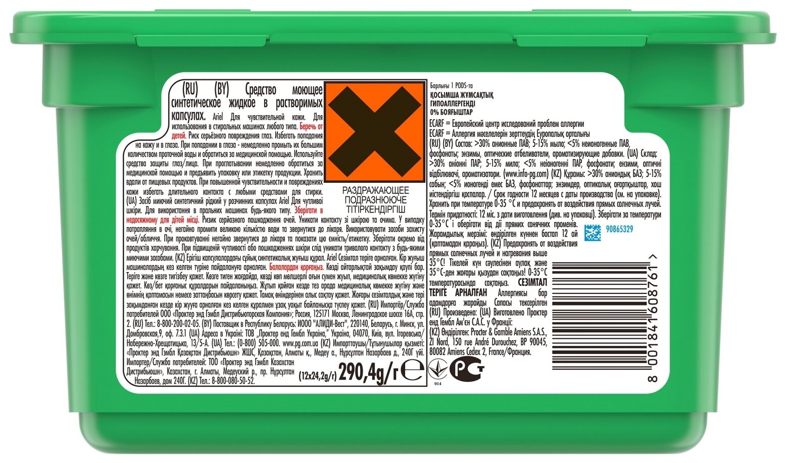 Ariel Капсулы Pods Sensitive Всё-в-1 Для Стирки 12 шт информация: