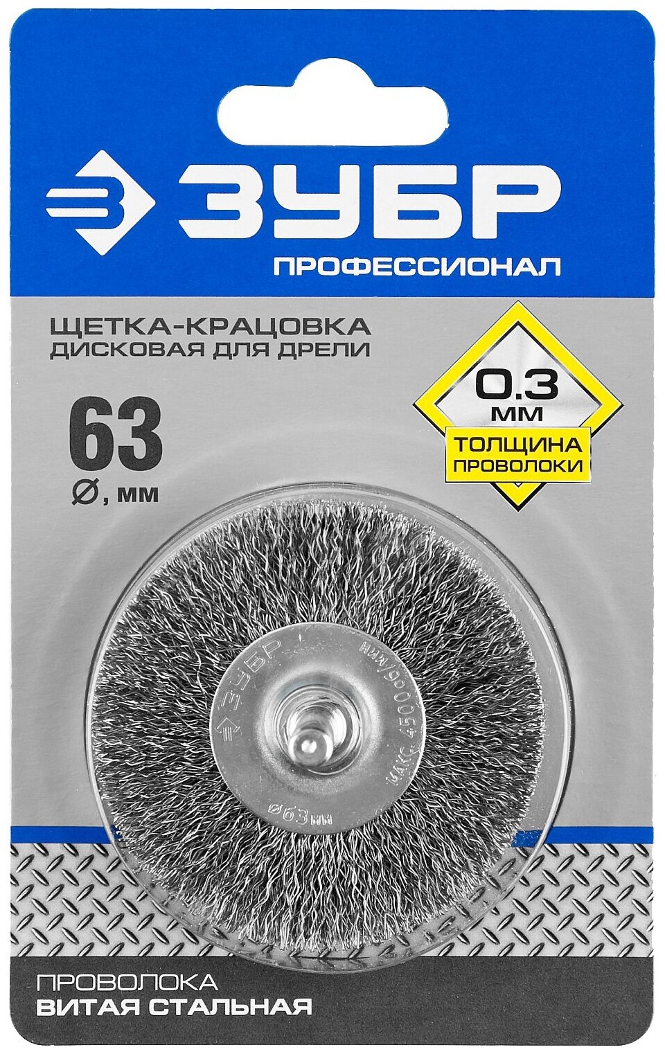 ЗУБР Профессионал. Щетка дисковая для дрели, витая стальная проволока 0,3мм, 63мм