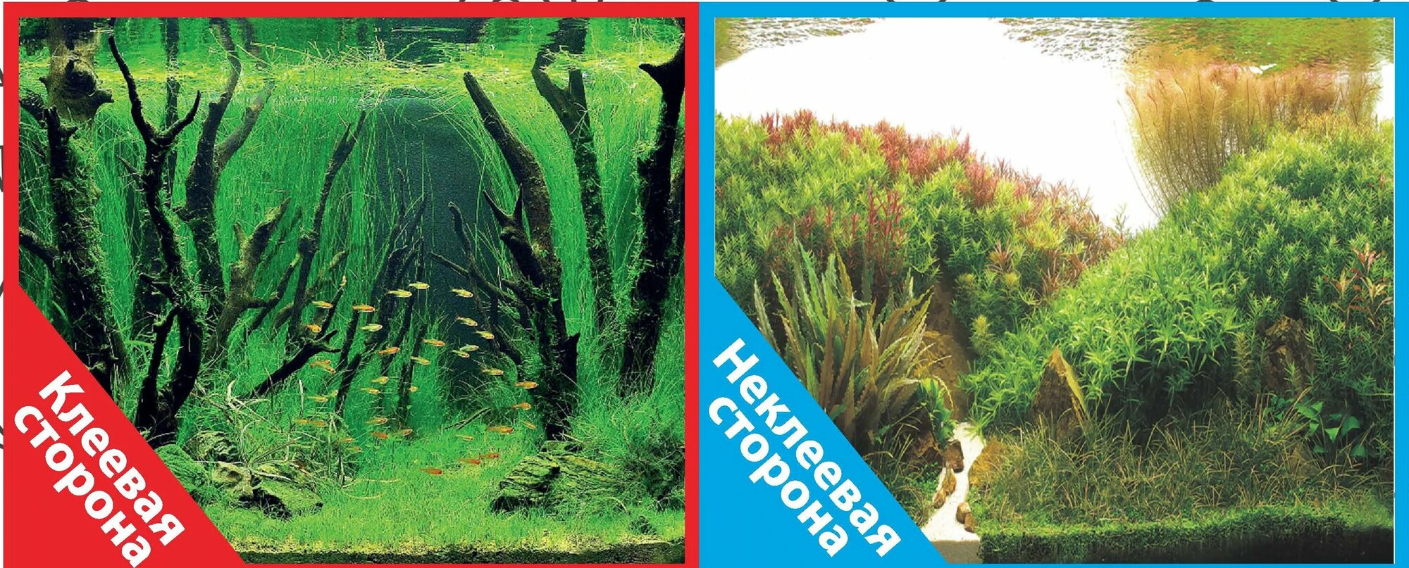 Фон д/аквариума двухстор. 50*100см Коряги с растениями самоклеящ. стор./Растительные холмы 9084/9085