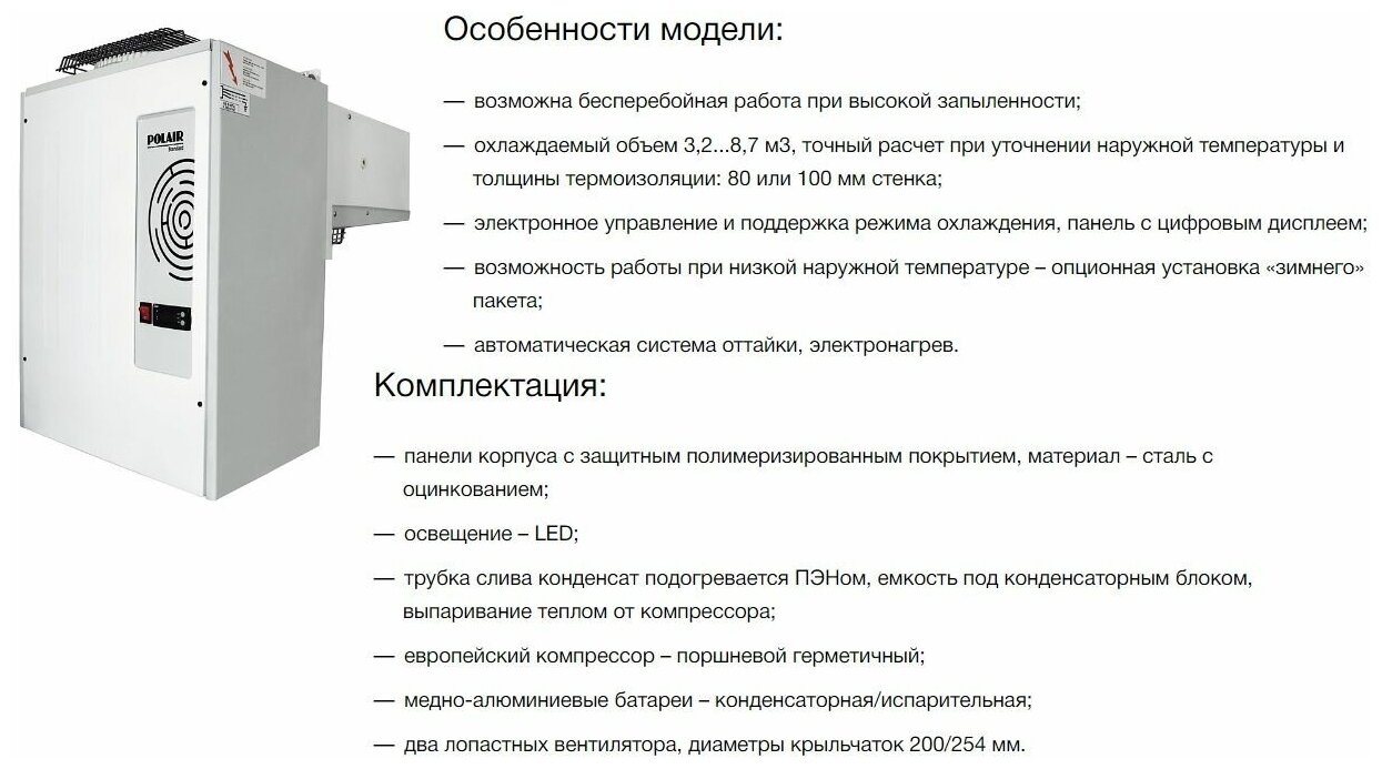 Моноблок низкотемпературный POLAIR MB 109 S (-15...-25°С) информация: