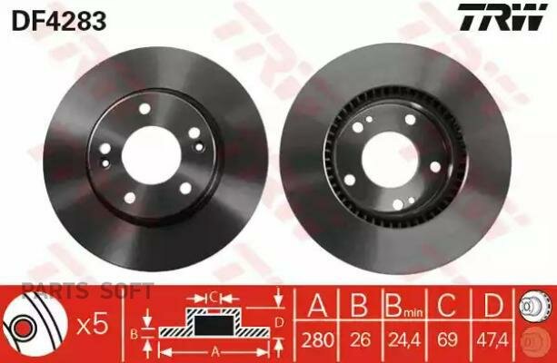 TRW DF4283 Торм.диск пер.вент.[280x26] 5 отв. 2шт информация:
