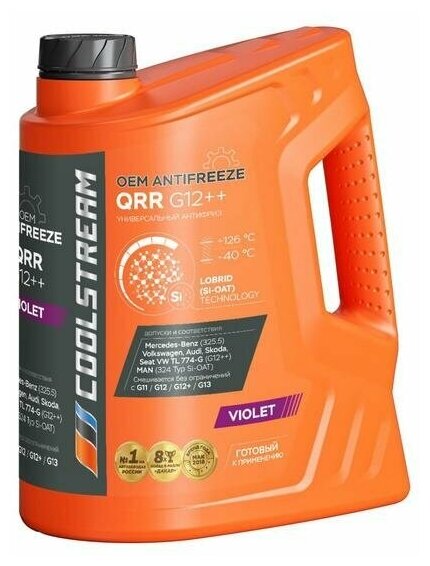 Антифриз g-12++ coolstream antifreeze qrr готовый (фиолетовый) vw/мв 5кг -40 °с, coolstream, cs-011202
