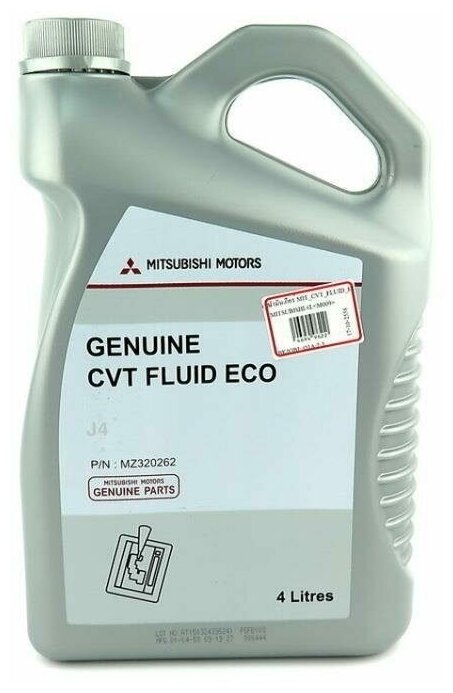 Масло трансмиссионное Mitsubishi CVT Fluid ECO J4 (таиланд), (4л) + бирка, жидкость АКПП синтетика для коробки передач Мицубиси MZ320262, РТЛ