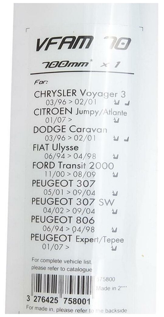 Бескаркасная щетка стеклоочистителя Valeo First Flat VFAM70, 700 мм. Крючок 9*3 / 9*4