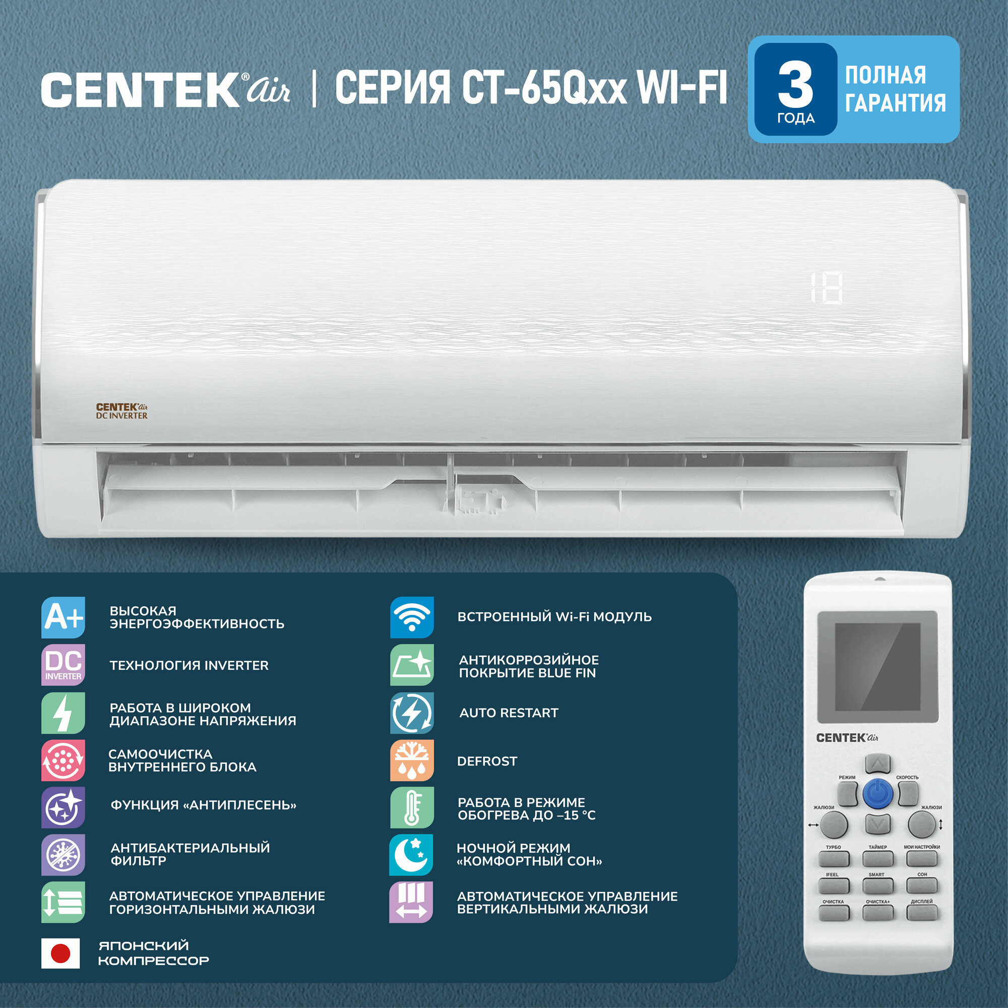 Инверторная сплит-система Centek CT-65Q24 информация: