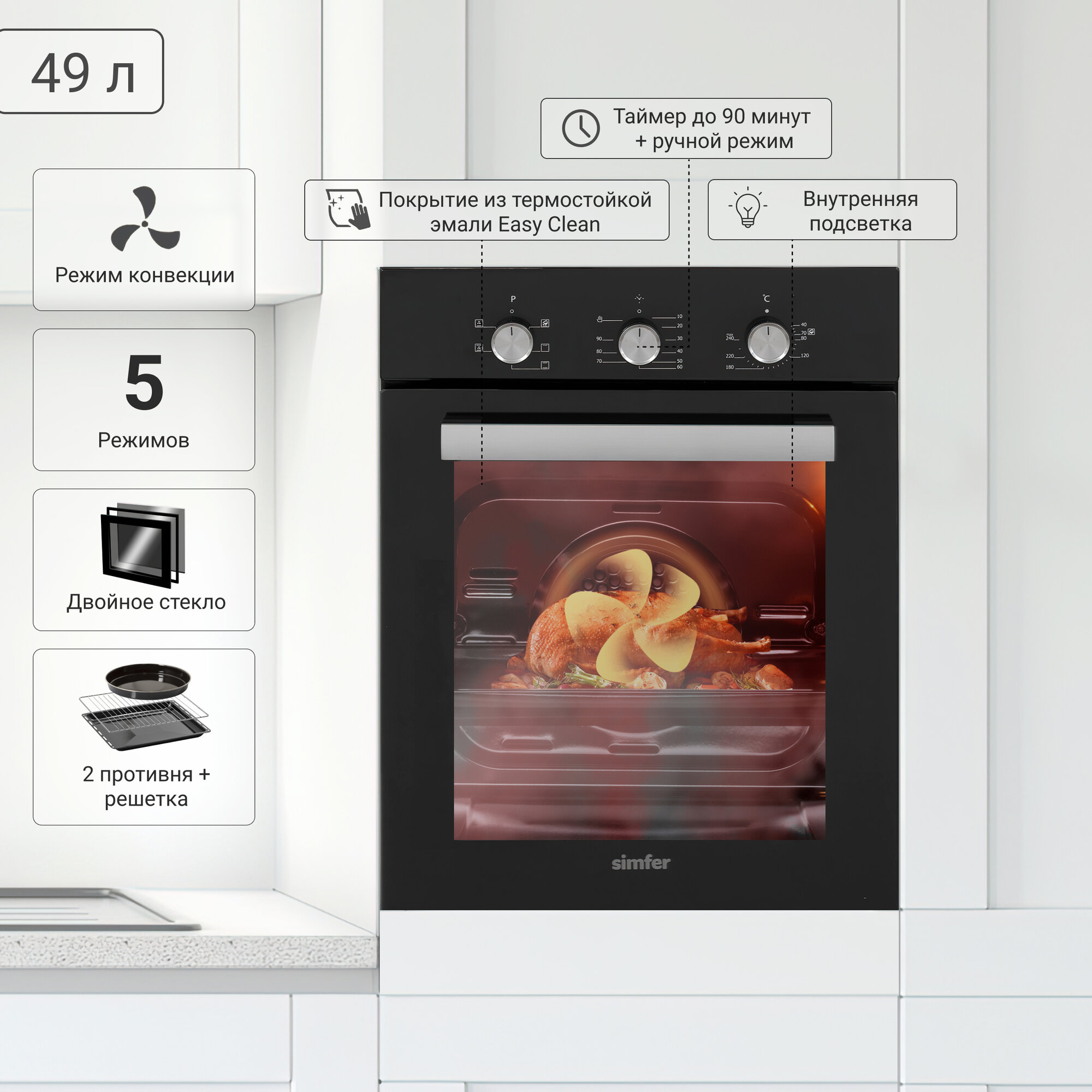 10 цен на Электрический духовой шкаф Simfer B4EB16016, 5 режимов работы, конвекция