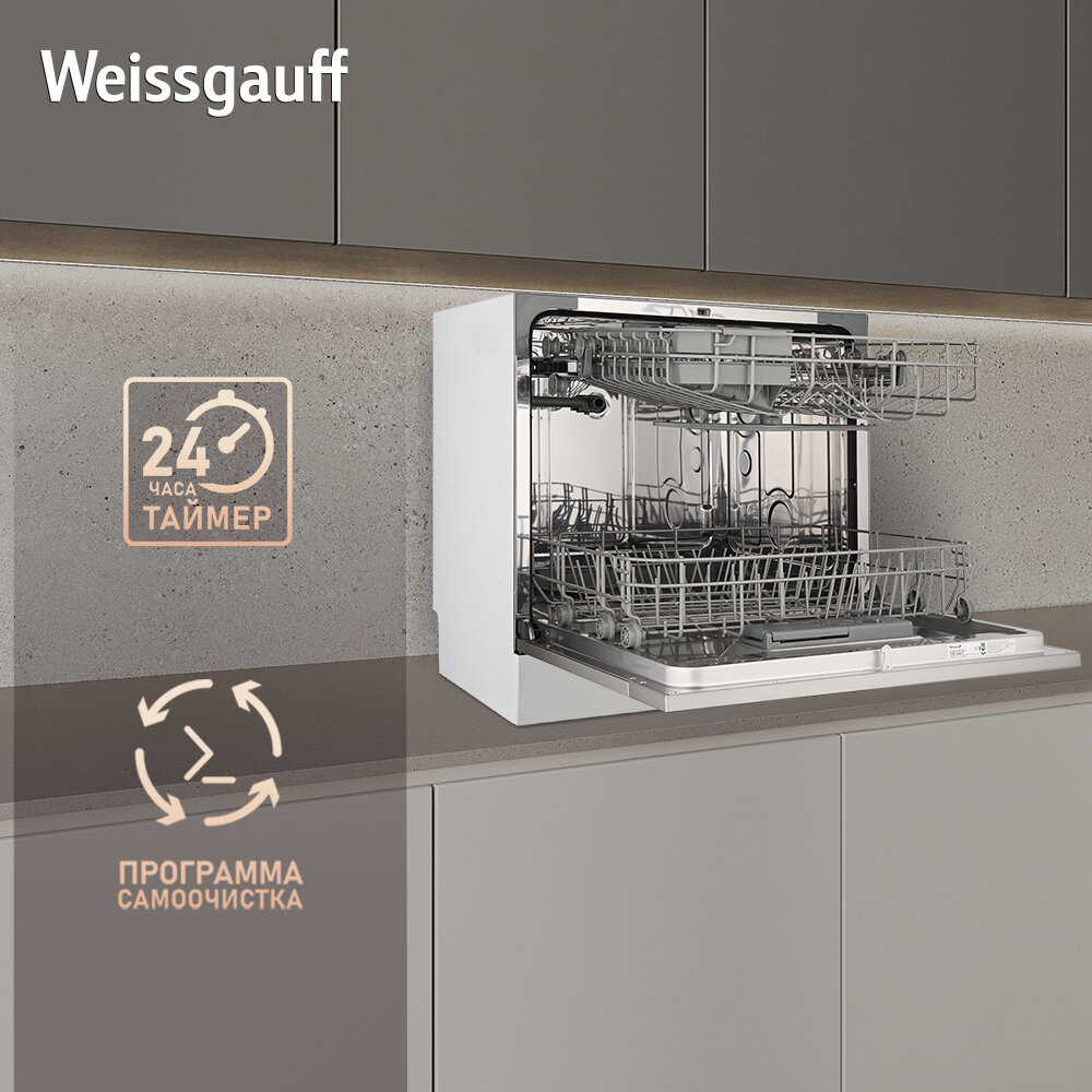 Настольная посудомоечная машина Weissgauff TDW 4006 D,З года гарантии, 8 комплектов посуды, 7 программ, Функция самоочистки, Быстрый режим 30 мин, Дисплей, Таймер, Низкий уровень шума, дозагрузка 27 280 ₽