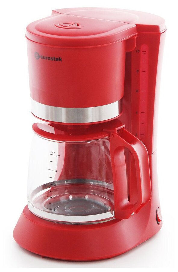 10 цен на Кофеварка Eurostek ECM-6632, капельная 680Вт, объем 1200мл, для молотого кофе. красная