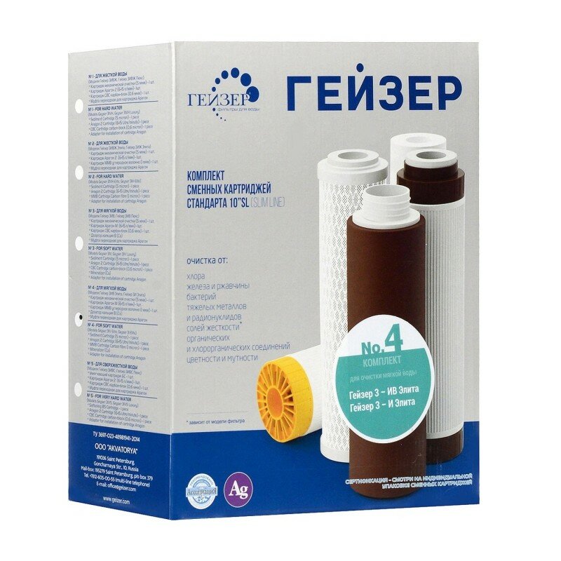 Гейзер Комплект картриджей №4 для Элита мягкая вода 50008, 4 шт., 10 Slim Line