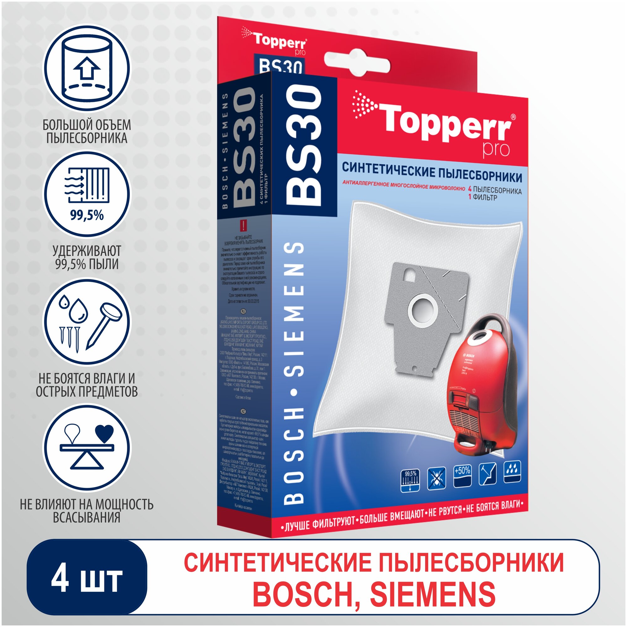 Topperr Пылесборник (мешок) синтетический для пылесоса Bosch, Siemens - 4 шт + 1 фильтр, BS40, BBZ71AFK, VZ71AFK