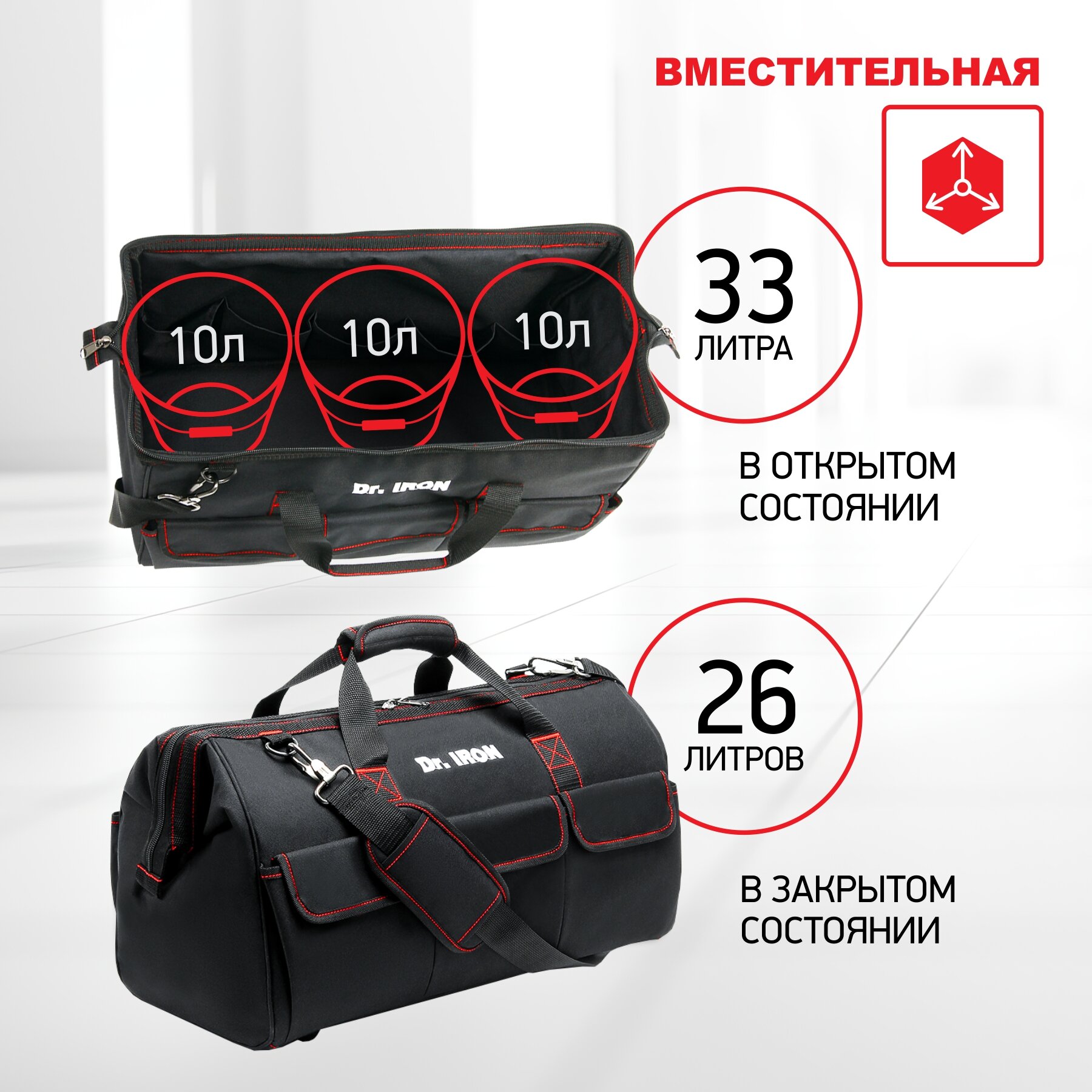 Сумка для инструмента с ремнем 500х230х300 мм Dr.IRON информация: